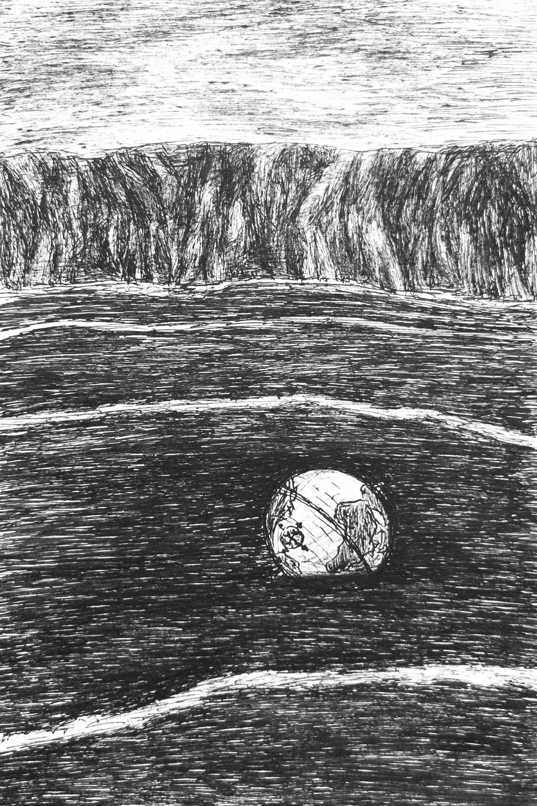“Floating Globe” pen on paper (2025)